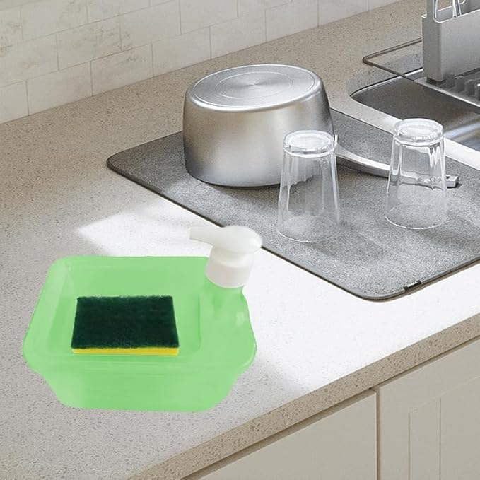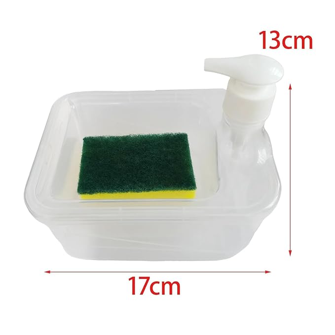 Double Layer Liquid SOAP Dispenser with Pump and Sponge, Practical for Hotel Sink Clear, SOAP Dispensing Liquid Pump Bottle for Home, Kitchen Rectangle (2 in 1)
