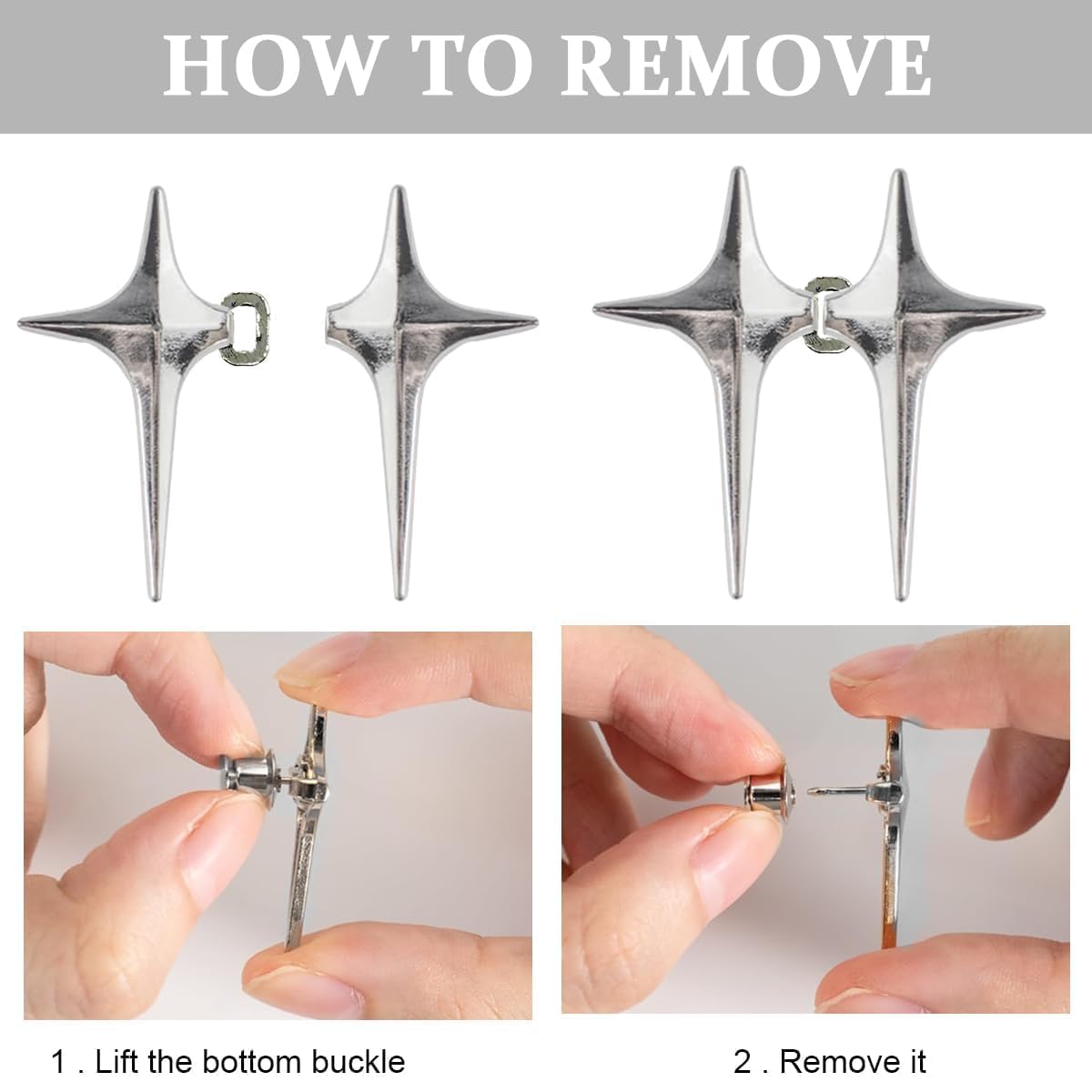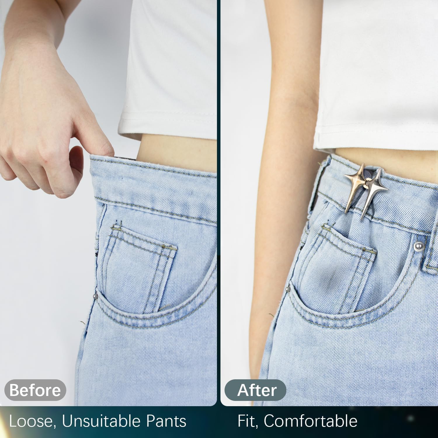 2 Pairs Silver Star Adjustable Waist Buttons – Durable No-Sew Removable Jean Button Pins, Reusable Pants Waist Buckle Extenders & Tightener Clips for Loose Jeans, Skirts, Trousers & Dresses