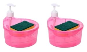 - The dispenser features a pump mechanism for easy dispensing of liquid soap. The pump is usually made of plastic as well and is designed to be durable and long-lasting. 2 In 1‘: Soap Dispenser And Sponge Holder 2 In 1 Design For Kitchen Use, Easy To Fill Soap Liquid, No More Messy Dripping, Convenient To Use.