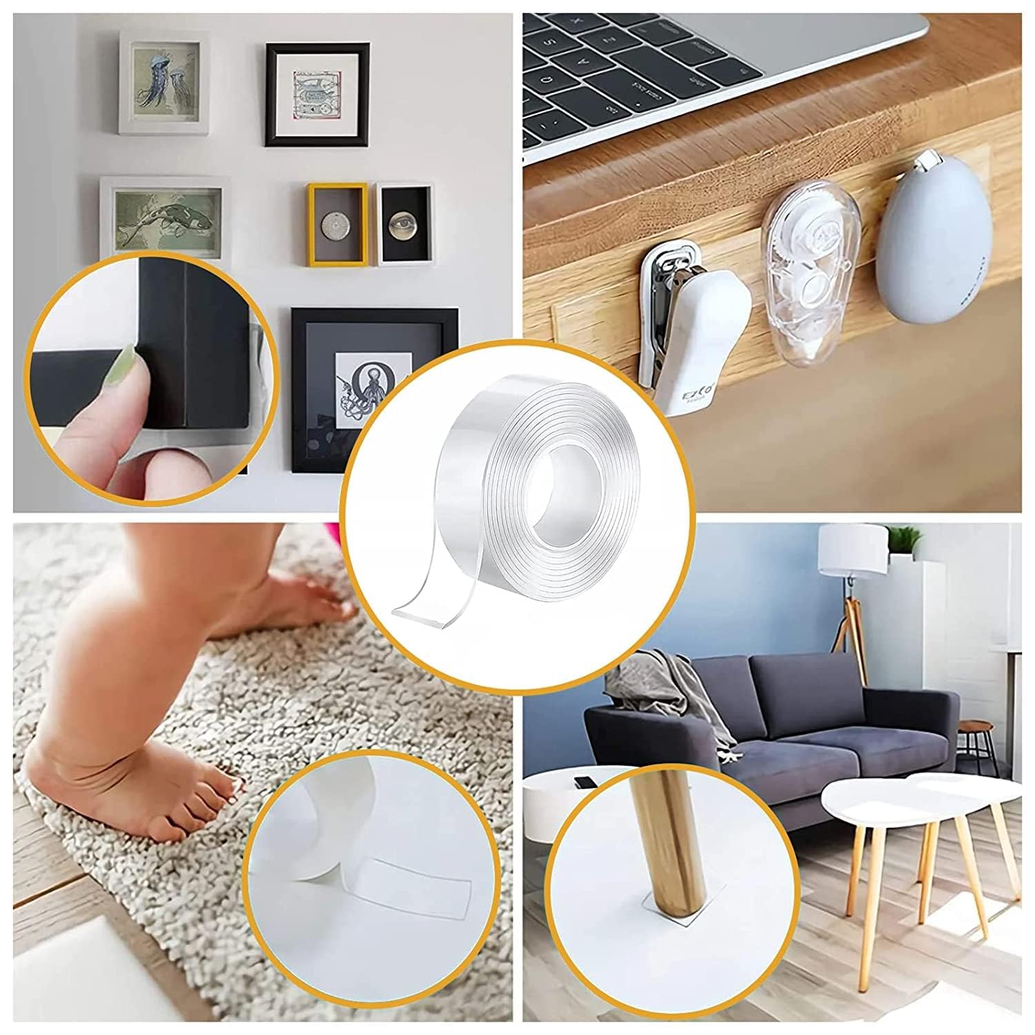 - HIGH QUALITY MATERIAL – The gel tape double sided is made of quality material, durable, double-sided adhesive, transparent, will not leave traces on the wall or any surface. Anti slip ,can be cut, washable, reusable